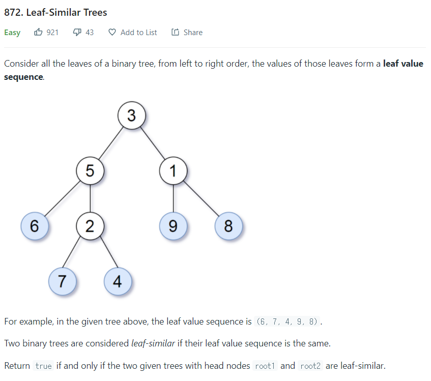 public boolean leafSimilar(TreeNode root1, TreeNode root2) {