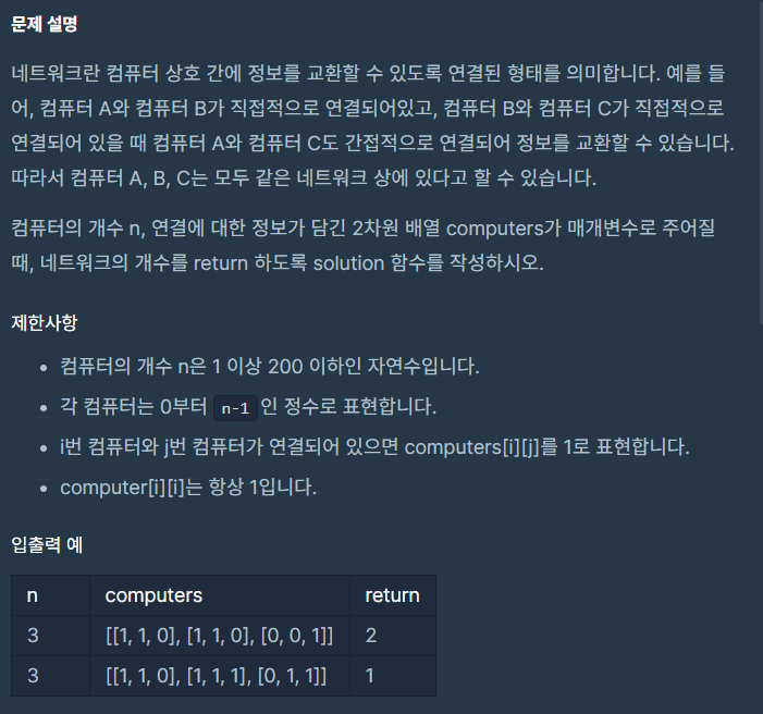 코딩테스트 연습 - 네트워크