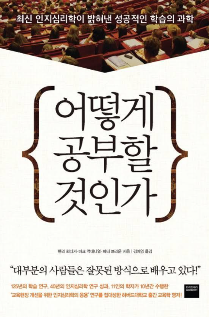 이 책은 "지식을 더 잘 익히고 오래 기억하려면 어떻게 해야하는가?" 에 대한 책이다. 학생과 교육자 모두에게 가치있는 책이고, 비단 공부뿐만 아니라 코딩 공부를 어떻게 해야 하는지도 굉장히 도움이 된다. 코딩도 인강이 보편화된 요즈음, 단순히 강의 수강 이후 코드를 따라치고 만족하는 사람들은 필히 필히 본인의 학습 방법을 점검해야 한다. 또한 열심히 강의 내용을 그대로 정리해서 블로그에 올리고 만족한다면 이 또한 효과적이라고 할 수 없다. 자신만의 코드로 표현하기 위해, 자신만의 언어로 표현하기 위해 고민하고 씨름하는 순간 진짜 공부의 시작이다. 결론은 인출, 간격두기, 교차하기, 변화주기, 반추, 정교화를 하는 것이다.
