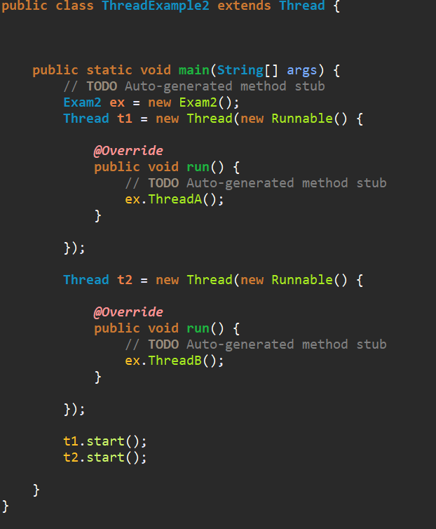 - Runnable은 인터페이스이므로 extends와 중복하여 사용가능