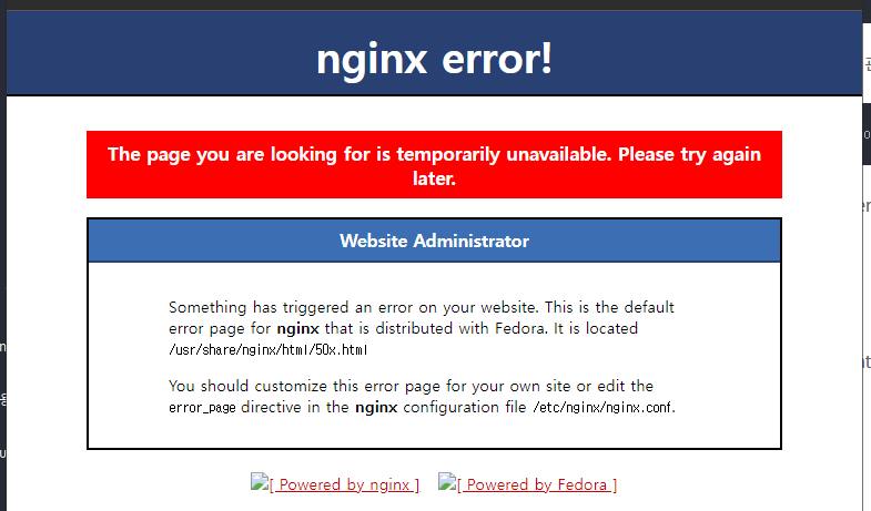 하지만 다시 nginx로 접속하면 오류가 나는데, 제대로 로드밸런싱이 안되어있기 때문입니다.