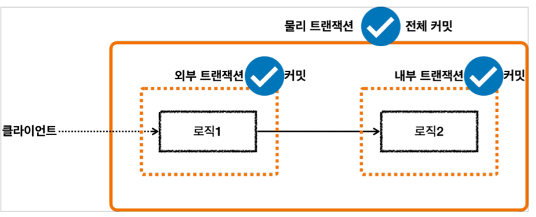 - 모든 논리 트랜잭션이 커밋 되어야 물리 트랜잭션이 커밋됩니다.