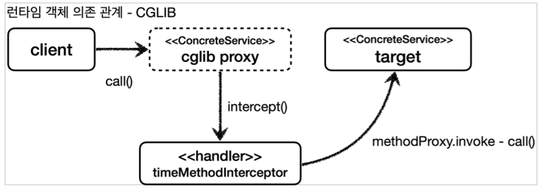 cglib proxy가 생성되어 timeMethodInterceptor가 target을 호출합니다.