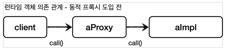 기존의 런타임 객체에서 client는 aProxy를 통해 aImpl을 호출합니다.